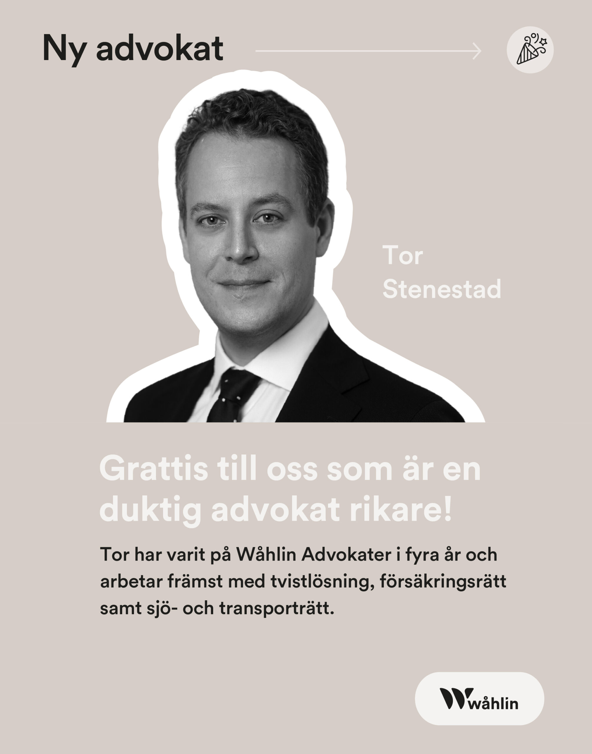 Tor Stenestad har varit på Wåhlin Advokater i fyra år och arbetar främst med tvistlösning, försäkringsrätt samt sjö- och transporträtt.
